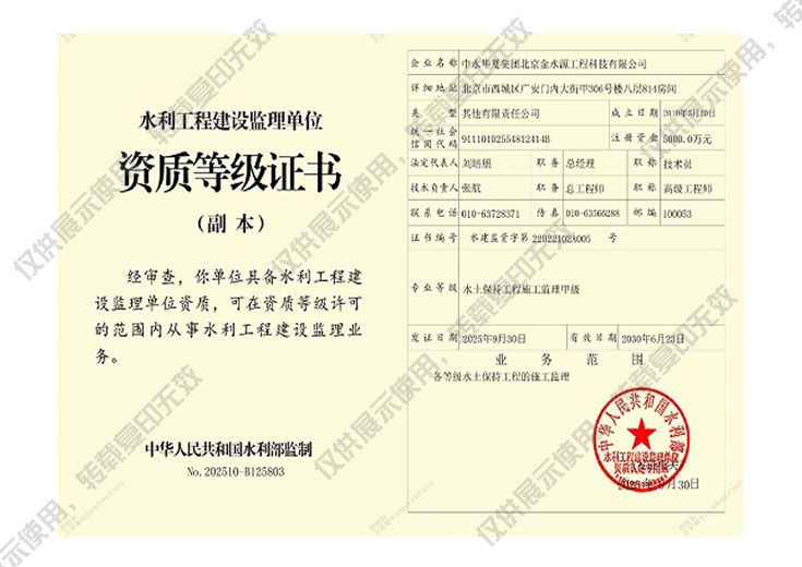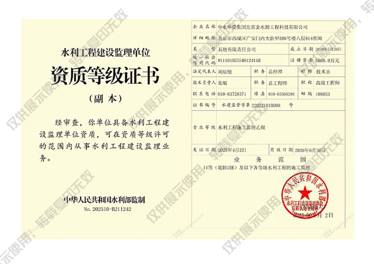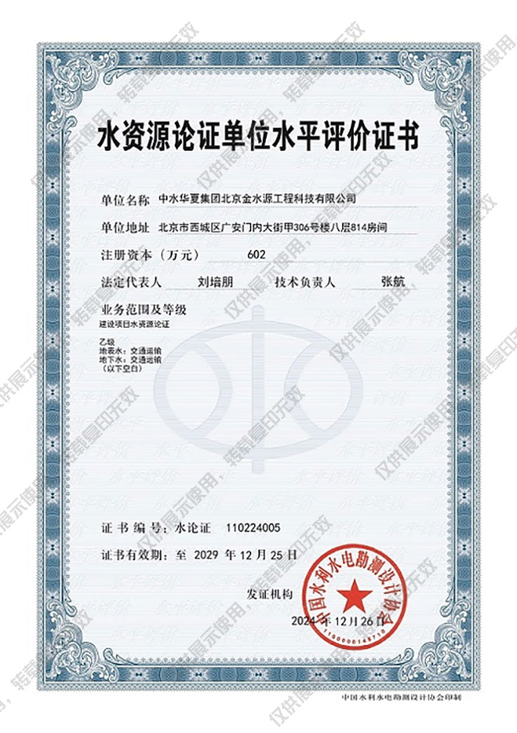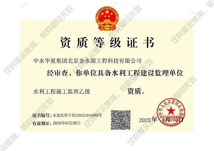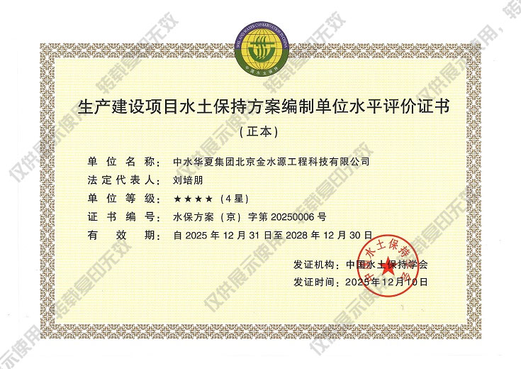 中水华夏集团北京金水源工程科技有限公司是为适应国家实施新水土保持法,并在全国发展水土保持生态环境战略的形势下创建成立的。金水源公司成立于2010年,专业从事水土保持方案编制、水土保持监测、水土保持工程施工监理和水土保持专项验收、洪水(影响)评价、水资源论证等业务,2018年被曾认定为国家高新技术企业,致力为各地政府和各类生产建设项目投资建设单位提供优质技术咨询服务并携手创建优质工程。